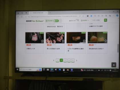 授業のめあては「肺で酸素と二酸化炭素が交換するしくみが理解できる」でした。先生が説明用の動画をいくつも用意していたので、教科担当の先生の質問にテンポよく生徒は答えることができていました。