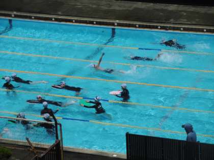 今年一番の暑さが更新された今日の水泳の授業でした。プールでも熱中症は起こりますので、生徒の体調管理に十分に注意しながらの授業でした。