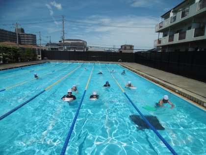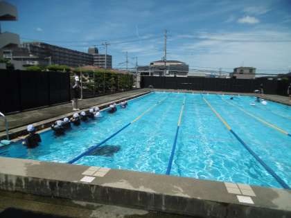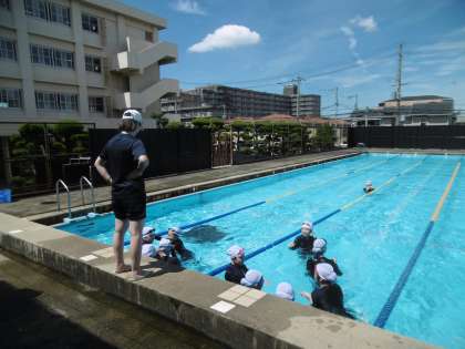 気持ちよく水泳の授業に参加をしていました。1年生も少しずつ、本格的な泳法を習い、泳ぐ距離が長くなってきています。