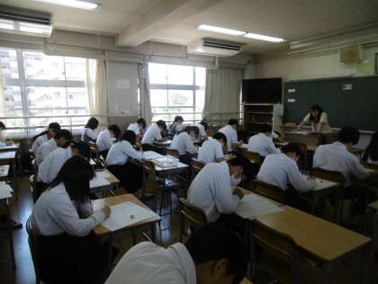 単元テストを行っていました。あまりの静かさと3年生の真剣さに本当に感心しました。さすが本校の最上級生です。
