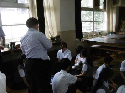 今日は本校に講師をお招きして、いのちの学習を行いました。生命の誕生するしくみを教材や教具を使って、丁寧に説明していただきました。写真は「赤ちゃんの抱っこ体験」をしているところです。赤ちゃんの抱き方やミルクの飲ませ方などを講師の先生から教えていただき、人形を使って実際に体験しました。