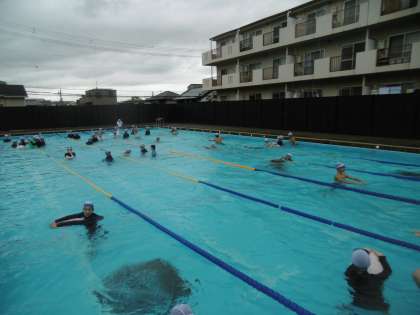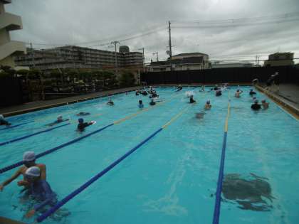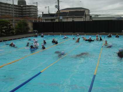 涼しい気温の中での水泳の授業でした。写真は授業の最後の自由時間の様子です。子どもたちの歓声が校舎まで聞こえていました。やはり、子どもは元気です。