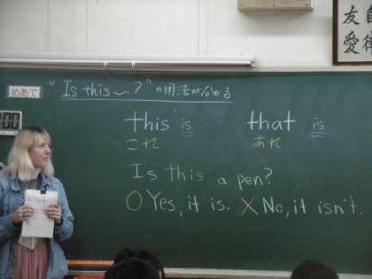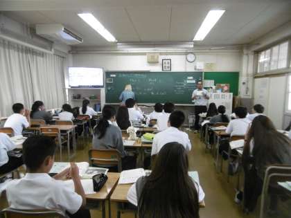 疑問文の作り方についての授業でした。質問したいことをプリントに絵と英文を書き、相手に質問するという授業でした。今日も英語科の教員とAET(英語実習助手)との絶妙な声掛けが、スムーズな授業展開を生んでいました。