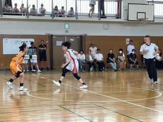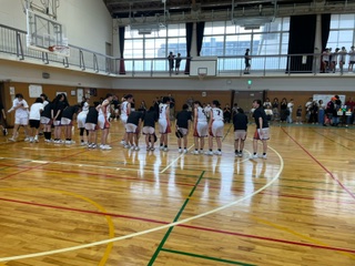本日2試合めの大阪府選手権大会出場をかけた試合が行われました。前半は接戦で1点を争う展開となりました。第3クォーターで相手のシュートが決まり始め,離される展開となりましたが,第4クォーターも競り,好ゲームとなりました。惜しくも8点差で負けてしまいましたが,最後の最後まで,コートに立っている生徒,ベンチで応援している生徒が一丸となって,勝利をめざし,あきらめることなく,いい声かけあいができていました。大阪府選手権大会出場をめざして,ここまで頑張ってきたため,悔しい思いが強いですが,再来週からは3年生にとっては最後の大東市大会が行われます。大東市大会優勝(有終の美)をめざして,また来週から頑張ります。