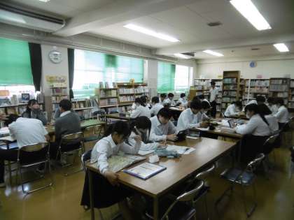 図書館での自習でした。本当に静かな授業の中で、生徒一人一人が自分で見つけた課題をしっかり行っていました。いい形で1学期の締めくくりができています。