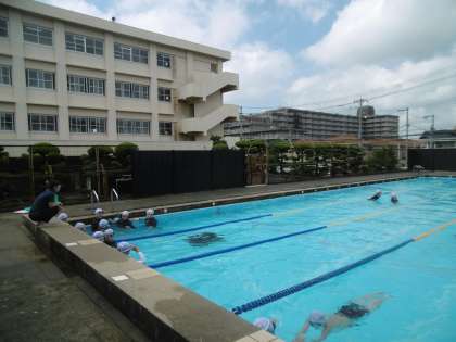 水泳の授業でした。授業を重ねるごとに、泳ぐ距離が少しずつ増えています。夏休みは季節柄、海や川、プールに行くことがあると思いますが、水の事故には十分に注意しましょう。