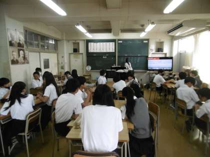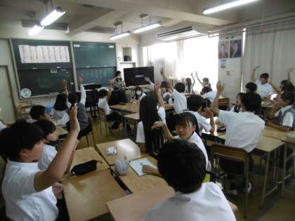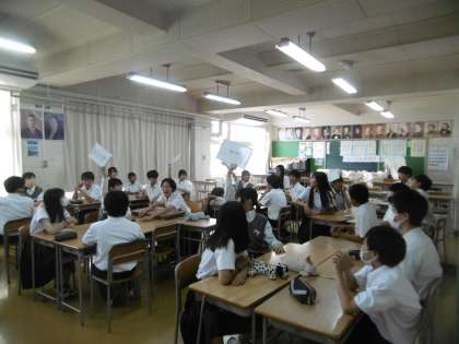班対抗曲名当てクイズが行われていました。教科担当の先生から出題されたジャンル別に曲名が出題されていました。やはり、生徒はTikTokで流れている曲が得意分野のようでした。