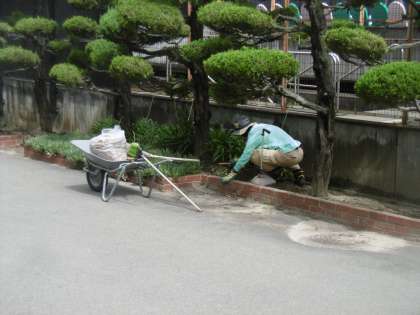 環境整備員さんが本当に暑い中、花壇の整備をしてくださっていました。ありがとうございました。