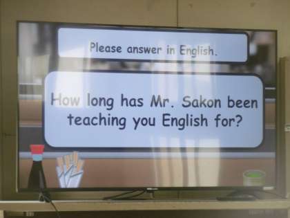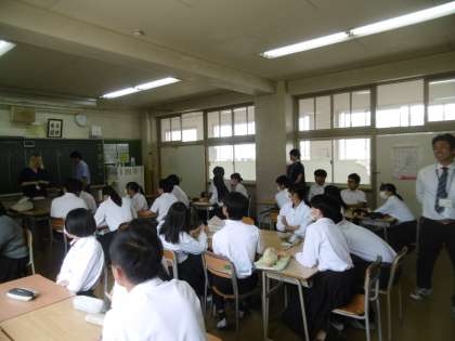 教室に英語科の先生が4人もいて、いつでも質問しやすい環境になっていました。学期末ということで、復習をしながら班対抗でゲームを行っていました。今日も教科担当の先生とAET(英語実習助手)の連携は見事でした。