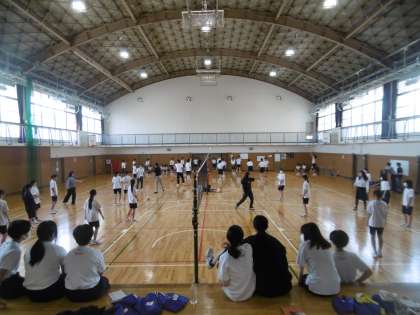 明日の終業式を前に、男女別でバレーボール大会が行われていました。学年の先生もコートに入り、生徒と一緒にバレーボールを楽しんでいました。45期生らしい光景にうれしい気持ちになりました。最後まで当たり前の行動をしっかりと行う3年生にあっぱれです!