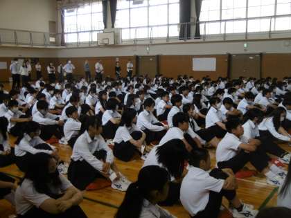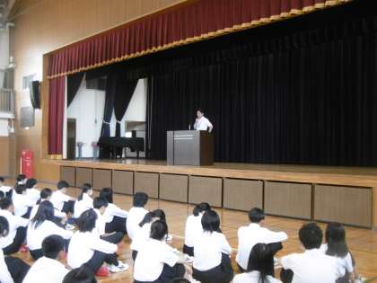 その後、生徒指導や部活動担当の先生から、夏休みに気をつけなければならないことなどについて、生徒に話をしました。1学期最終日まで、谷中生315名の「話を聞く姿勢」は本当に見事でした。