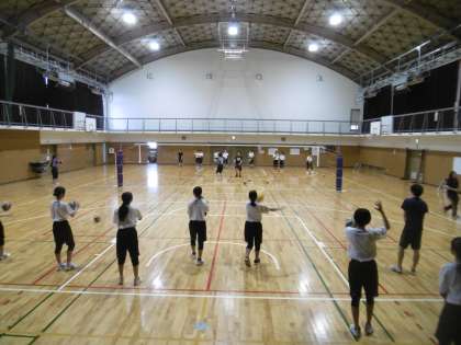 写真は上から、卓球部、女子バレーボール部です。卓球部は今日は学習会でした。バレー部は、顧問の先生も生徒と一緒にサーブ練習をしていました。職員室にいる先生も練習を手伝いに来てくれていました。