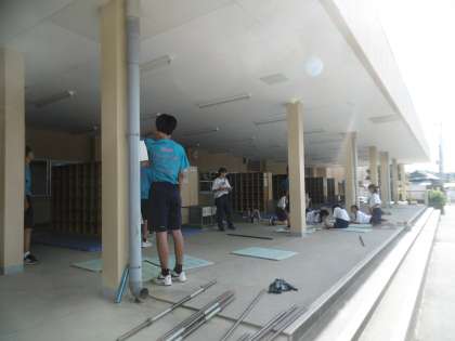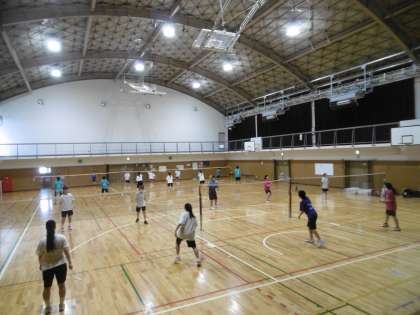 写真は上から、女子バスケットボール部、バドミントン部、陸上部です。夏休み中は体育館などの割り当てを守って、活動しています。バドミントン部は明日の公式戦に向けて、熱のこもった練習をすることができていました。感心しました。