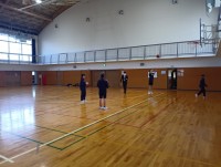 体育館割り当ての最後は女子バスケットボール部でした。今日も顧問の先生は、生徒と一緒に活動し、全メニューをこなしていました。動きはまだまだ現役選手のようでした。
