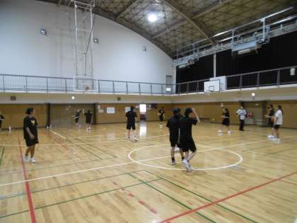 体育館割り当ての最後は女子バスケットボール部でした。今日も顧問の先生は、生徒と一緒に活動し、全メニューをこなしていました。動きはまだまだ現役選手のようでした。