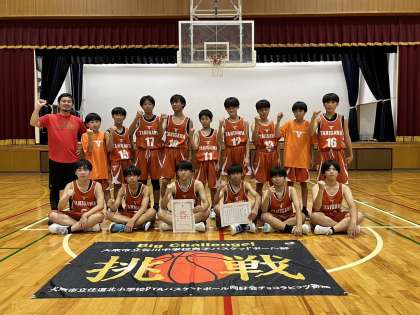 住道中学校との決勝戦でした。惜しくも63対77で敗れ、準優勝でした。女子が優勝だったので、「男女揃って優勝」がチームの合言葉になっていました。3年間がんばり抜いた3年生に大きな称賛を送りたいと思います。今年一番の暑さの中、たくさんの声援をありがとうございました。