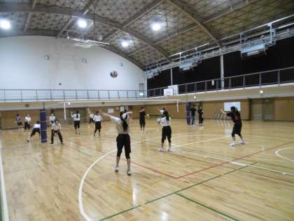 今日から夏休み後半戦の部活動がスタートしました。幾分暑さも和らいだ月曜日でしたが、体育館では女子バレー部が練習を再開していました。引退した3年生が練習の手伝いに来てくれていました。