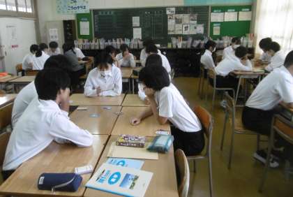生徒は「歴史人物かるた」をみんなで仲良く、楽しそうにしていました。45期生は仲のよい学年であることをまた感じることができました。