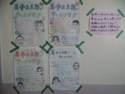 1年生の先生方が子どもたちに書中見舞いを書いていました。素敵な愛のある掲示物に感動しました。