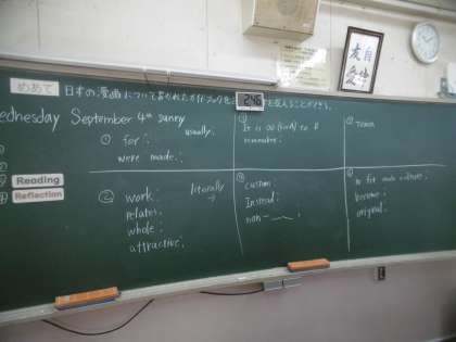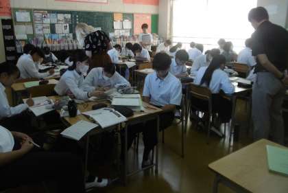 教室に3名の英語の先生がいて、とても質問しやすい環境になっていました。授業のめあてのレベルも高く、生徒一人ひとりが一生懸命に高速回転で考えていることがよく分かりました。
