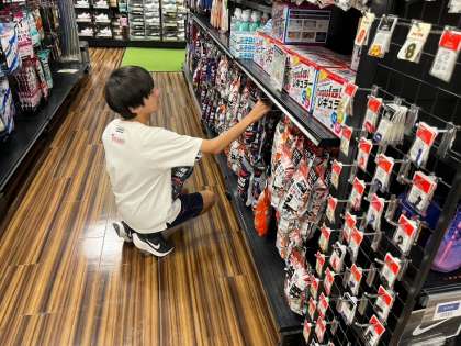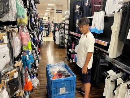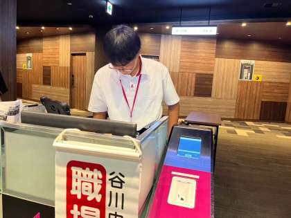 谷中生は、各事業所でもがんばっています。職場体験1日目を時間を守って行動することができています。写真は上から、イオンシネマ四條畷、スポーツオーソリティ四條畷イオンモール店です。