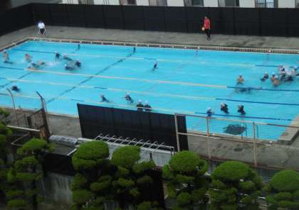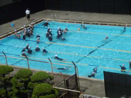 1年生の水泳の授業は明日までです。写真は自由時間の様子です。教科担当の先生がボールを貸し出してくれていました。生徒は本当に楽しそうでした。