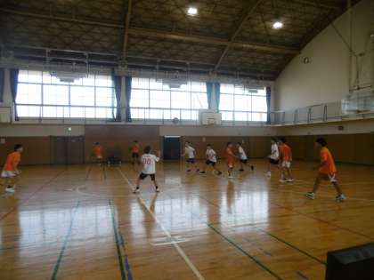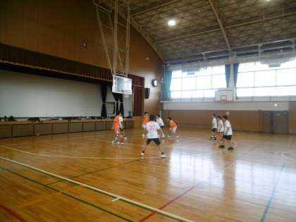 男子バスケットボール部が今日も朝練をがんばっていました。2年生は職場体験の疲れも見せず、元気いっぱいの練習でした。