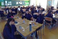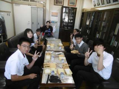 生徒会役員と校長室で給食を一緒に食べました。先日行われた生徒会サミットの振り返りや後期の生徒会に期待すること、生徒会活動でやり残したことはないかなどについて、話し合いをしました。今後の生徒会活動を通して、今までやったことのないことに挑戦してみようということで、ランチミーティングは終了しました。谷川中学校の真のリーダーとの昼食は、実に楽しい時間となりました。