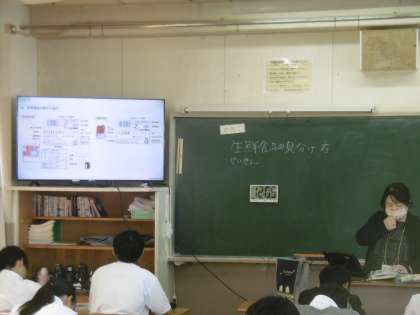 「生鮮食品の見分け方を知る」が授業のめあてでした。1年3組の子どもたちは、今日も授業を一生懸命に受けていました。