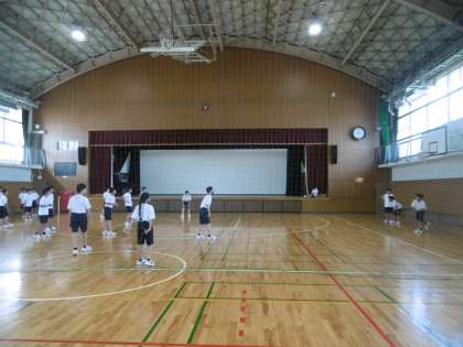 仲のよい学年らしく、ドッジボールを楽しそうにしていました。エアコンの効いた涼しい体育館は、やはり、子どもたちの運動量を高めていました。