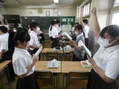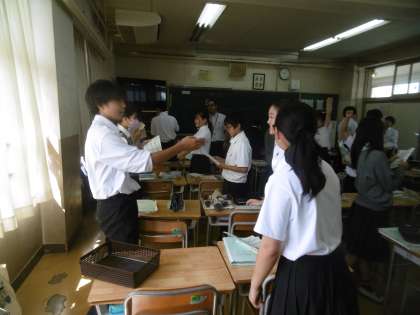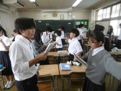 パンチゲームをペアで行っていました。パンチゲームとは、右手や左手の上げ下げ(手の形)を見て、相手が「T amやYou are、He is、She is」で答えるというゲームです。大いに盛り上がっていました。