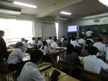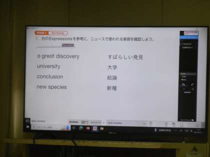 「ニュースの出来事を聞き取ることができる」が授業のめあてでした。今日も教科担当の先生と英語実習助手(AET)の役割分担や息の合った授業展開は見事でした。