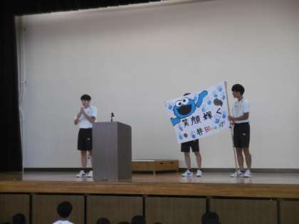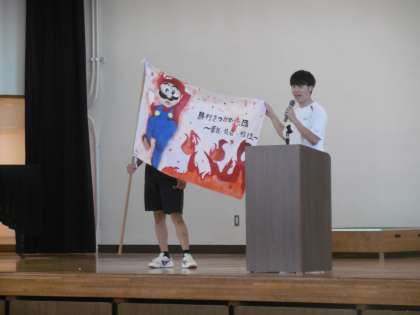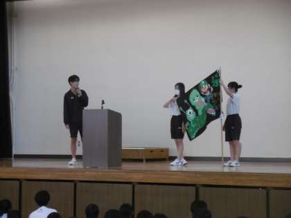 各団長から、団旗の紹介と各団員へ熱いメッセージがありました。写真は上から、青団、赤団、緑団です。