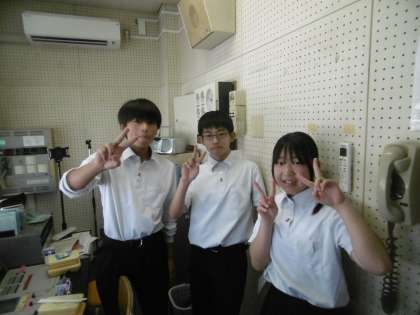 今年の生徒会役員が考えた「まきこめ企画の生徒会ラジオ」。今日は1年生の学級委員の代表生徒がお昼の放送でインタビューを受けていました。放送最後の3人で声をそろえて言った「バイバイ!」のあいさつがとてもよかったです。生徒会ラジオは来週も行われます。お楽しみに!