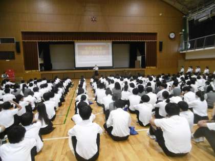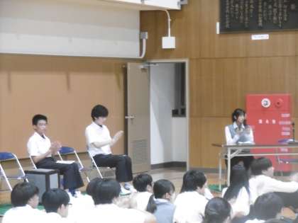 谷川中学校では、生徒会、学級委員会、各委員会(風紀、美化、体育、文化、図書、保健給食)の活動を振り返る生徒総会を前後期の2回実施しています。今日はどの委員会の発表内容も抜群でした。また、発表者の発表態度もとても立派でした。