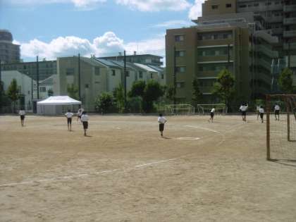 学習内容は「キックベース」でした。サッカーと野球の両方の要素を兼ね備えたスポーツに生徒は暑いグラウンドでしたが、楽しんでいました。授業後の振り返りもきちんと教科担当の先生の話を聞くことができていました。