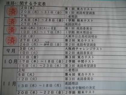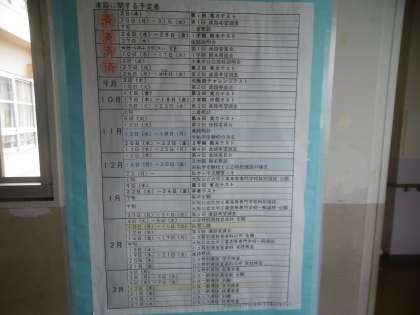 廊下に貼り出された掲示物です。進路関係の予定が書かれています。これからどんどん忙しくなってきます。先を見通す習慣を身につけましょう。