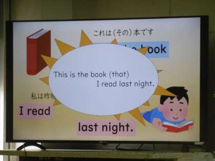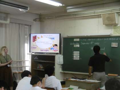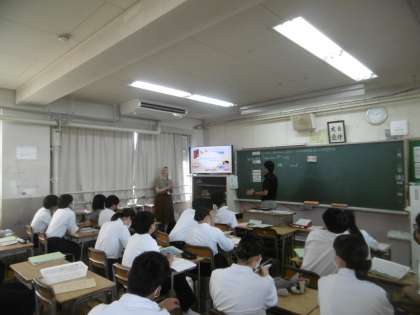 今日も教科担当の先生と英語実習助手(AET)の先生との息の合った授業が展開されていました。いつもテンポよく進んでいく授業は、今日も魅力的でした。