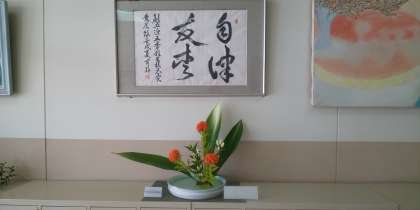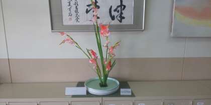 職員玄関にお花を生けてくださっています。時には生徒が登校する前に学校に来てくだり、生けてくださっています。学校の顔とも言われる職員玄関に毎日、心が和む素敵なお花があることに感謝しています。