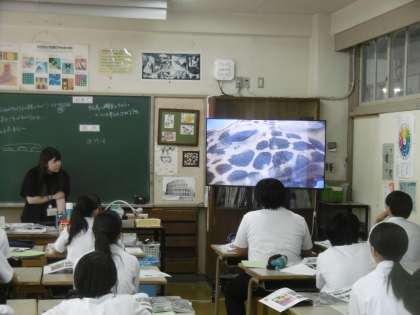 授業のめあては「版画の種類の違いについて考えることができる」でした。説明用の動画が分かりやすく、イメージをもつことにとても有効でした。今日も47期生の先生の話を聞く姿勢は、抜群でした。