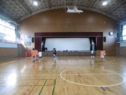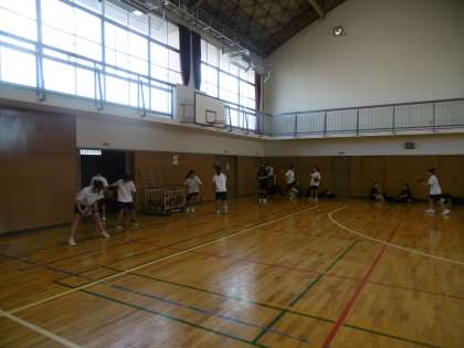 体育館で朝練をがんばっていた男子バスケットボール部と女子バスケットボール部です。時間を守り、いつも効率のいい練習をしている両クラブです。