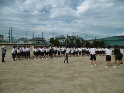 全体練習の最後は、応援練習でした。各団の団長、副団長が中心となり、団独自の歌や踊りをみんなで一生懸命に練習をしていました。明後日の金曜日は予行ですが、楽しみで仕方がありません。体育大会当日の完成形をご期待ください。
