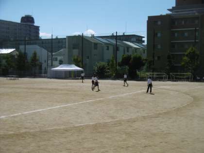 学習内容はソフトボールでした。2つのグループに分かれて、試合を行っていました。野球日和(ソフトボール日和)の気温でした。子どもたちは、楽しそうに授業に参加をしていました。