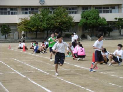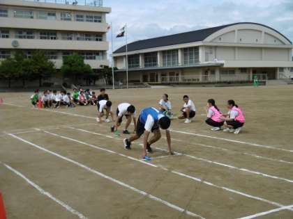 男子団対抗リレーの様子です。本番さながらの本気のリレーに、観客席から惜しみない拍手がたくさんありました。