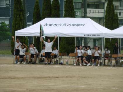 どの競技にも各団の熱い応援がありました。写真は上から、赤団、緑団、青団です。