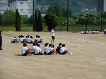 いよいよ体育大会まであと3日となりました。3年生による集団演技(男子:集団行動、女子:ダンス)も佳境に入りました。今日は男女でお互いの発表を見合っていました。男子は静かに女子の発表を見学することができていました。男女仲がよいのは、45期生らしく思えました。