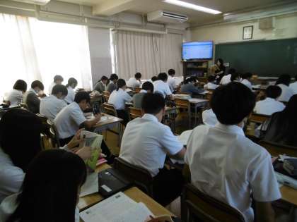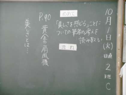 学習教材は「黄金の扇風機」、授業のめあては「美しさを感じることについての筆者の考えを読み取る」でした。輪番で一人ひとりが教科書を音読していました。全員が終わると、拍手が沸き起こり、お互いのがんばりをたたえ合っていました。とてもいいクラスだと感じました。