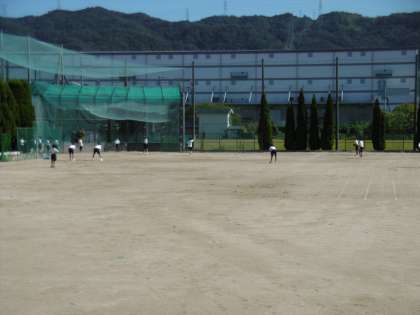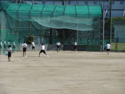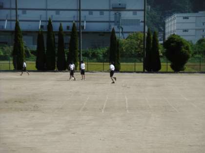 学習内容は「ソフトボール」でした。2チームに分かれて、試合を行っていました。「ナイスバッティング!」の声が遠くの体育館まで聞こえていました。