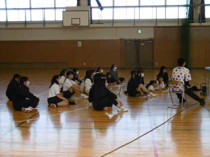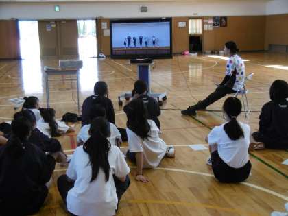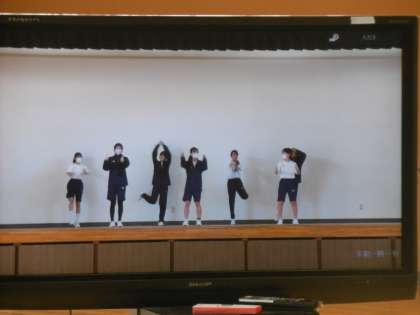 創作ダンスの発表会を動画で撮り、みんなで振り返りを行っていました。笑顔で生き生きとした表情でビデオを見ていました。一生懸命に練習してきたことが、映像を見ている様子から伺えました。