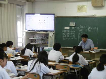 学習内容は「座標」でした。座標を取る時は、横軸(x座標)が優先になります。このあと、比例のグラフを書くことを学習します。そのために、しっかり座標が取れるようになっておきましょう。